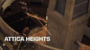 Attica Heights is composed of both a lower level and upper level. The upper level has multiple staircases the lead to the lower level, as well as a hole in the very center of the map. The lower level lacks cover in the very center while the upper level offers cover near the squad's spawn location.