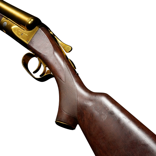 - Four unusable shells are attached to the right side of the stock.