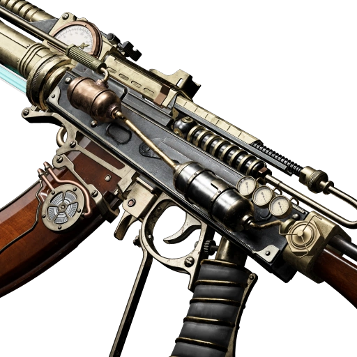 An eccentric clockwork rifle built from the hottest tech the 19th Century has to offer. |
